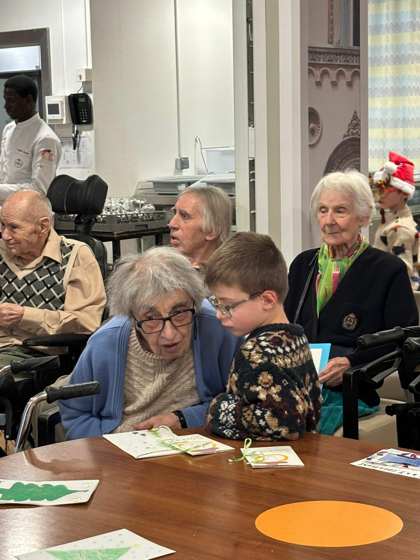Ils ont pu donner les cartes de vœux de toute l’école aussi ! Les résidents étaient très émus de recevoir autant !